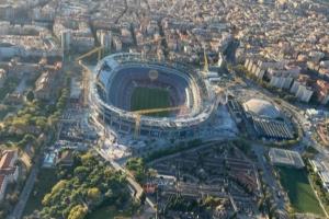 航拍图像显示,第三层看台是改进空间最大的部分。在第二层和第三层看台之间将设置VIP包厢环廊,这是新诺坎普球场的重大亮点之一。